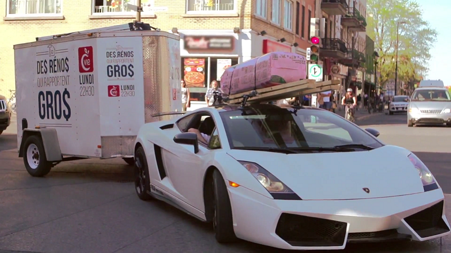 üks Lamborghini Gallardo haakekonksuga ja pandi ta Montreali tänavatel